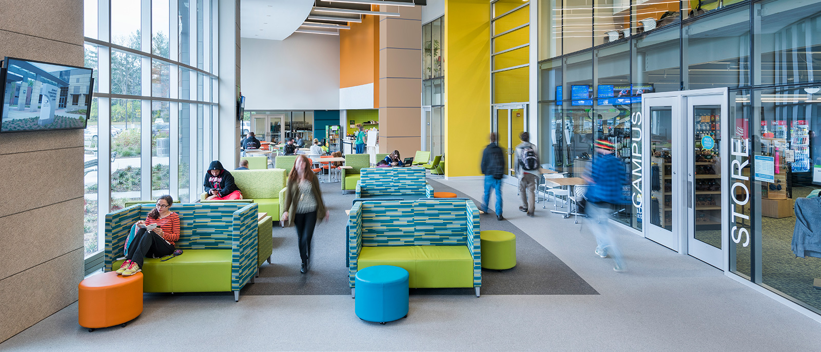 The project expanded and re-imagined the existing dining facility and student center, creating a revitalized hub for socialization on campus.