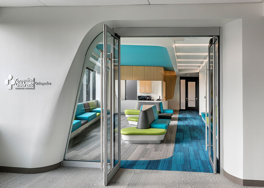 Connecticut Children’s Medical Center delivers outstanding care within a patient- and family-centered environment – a duality that can be seen in the organization’s new Orthopedic Center. The facility is one of only seven in the country to feature an EOS imaging system, providing frontal and lateral low-dose radiology images. This technical investment is balanced by a design that harnesses the positive effects of energizing color, soft forms, natural light and biophilic imagery, to create a welcoming and reassuring environment for young patients and their families.