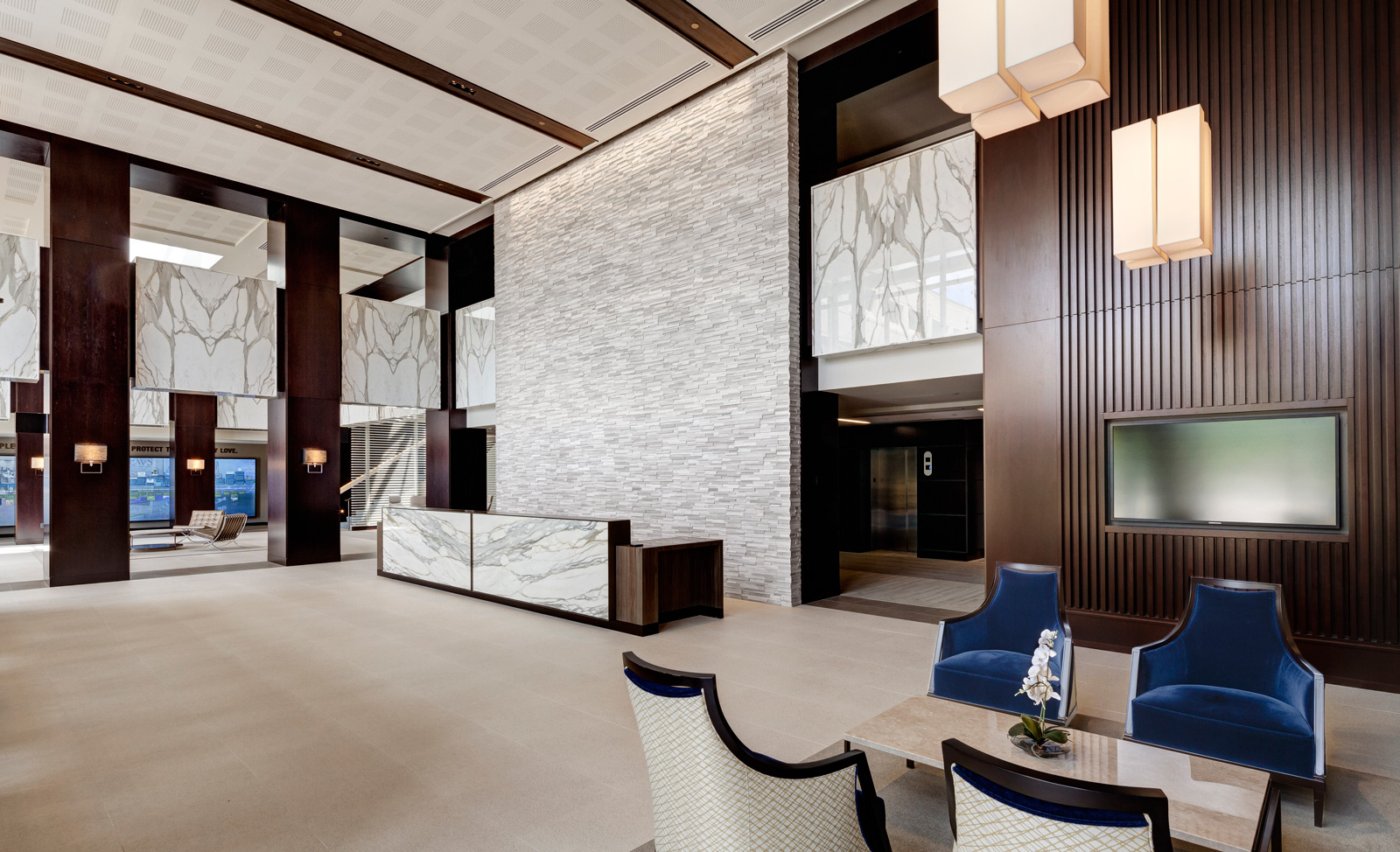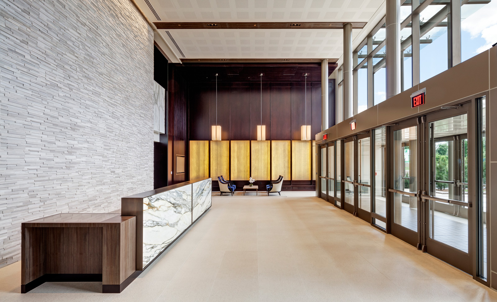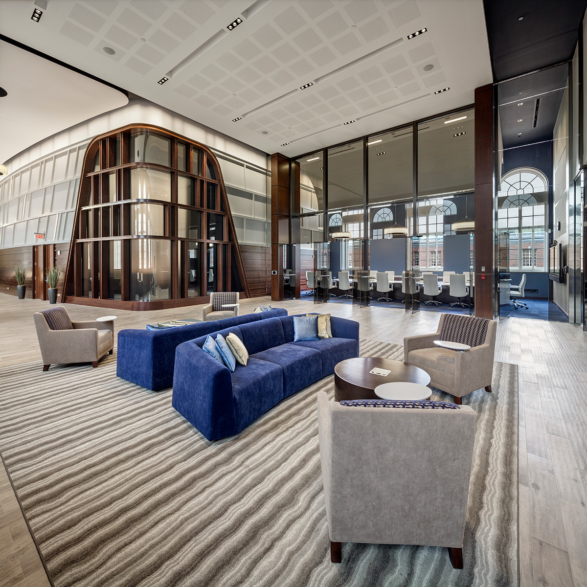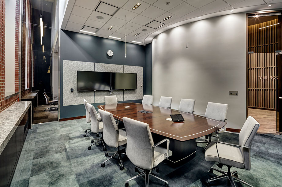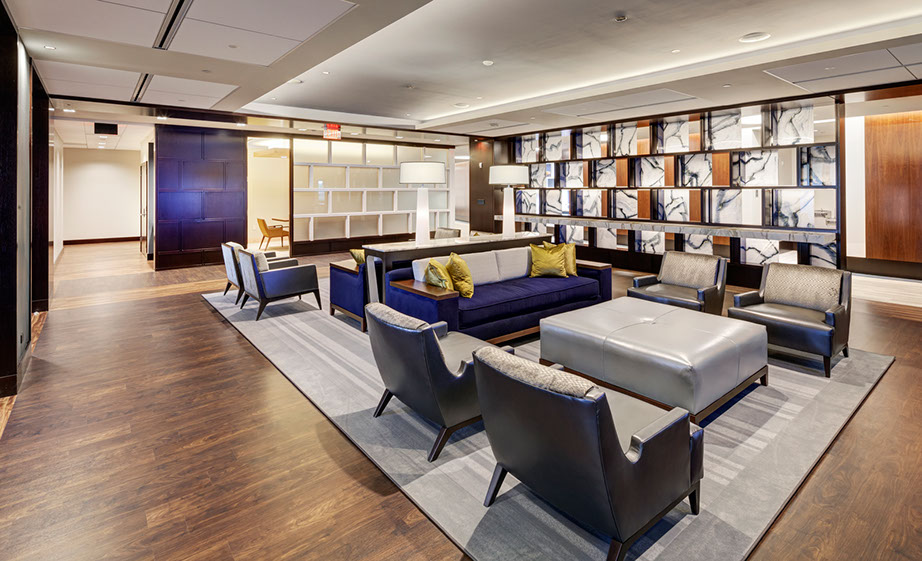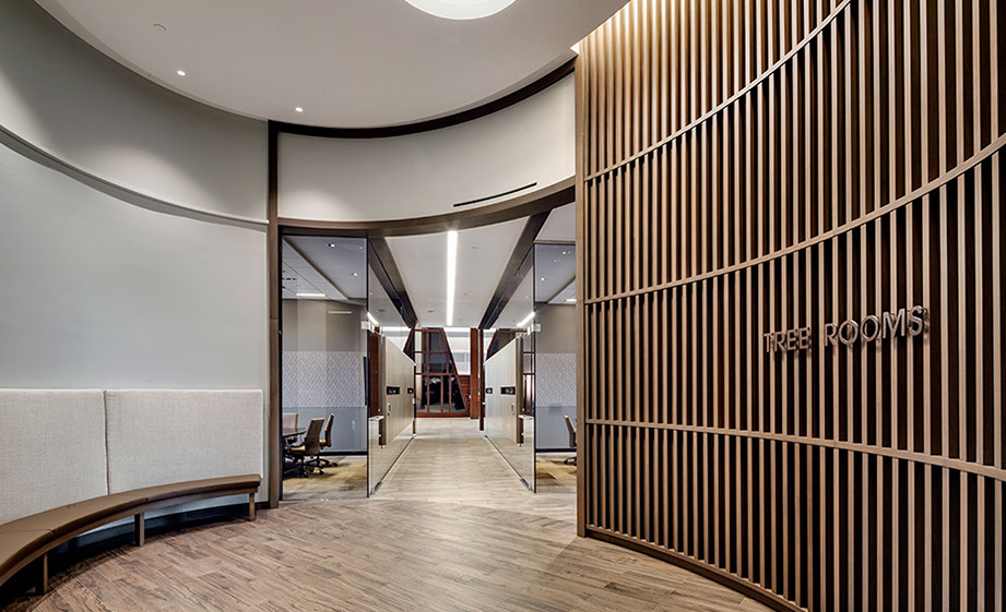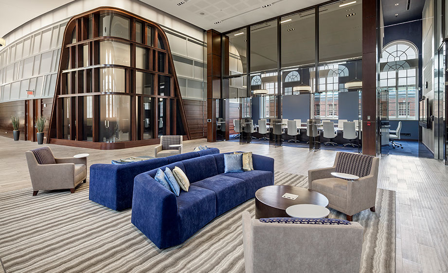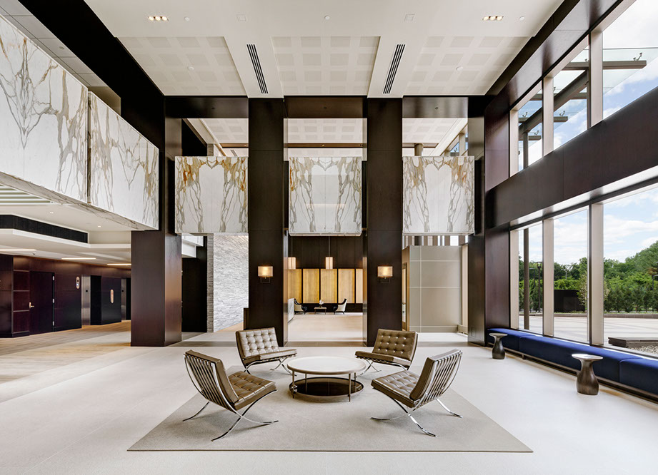MassMutual commissioned Tecton for a high-end entry court, corporate lobby and conference suite for their Retirement Services Group. RS moved from the headquarters to a satellite campus, requiring a comprehensive overhaul of the uninspiring 1980′s corporate facility. The solution is high-class and elegant, fostering a marked improvement in global business sales.