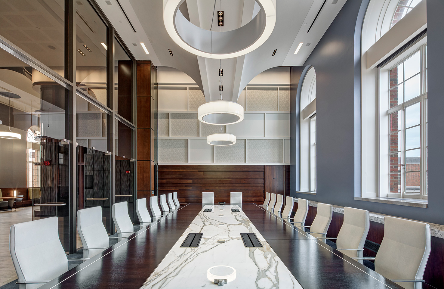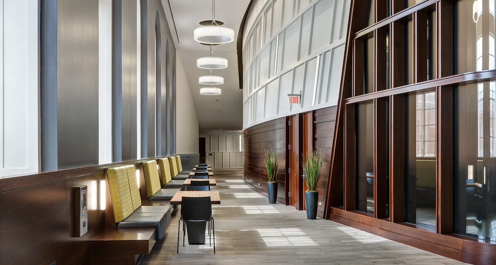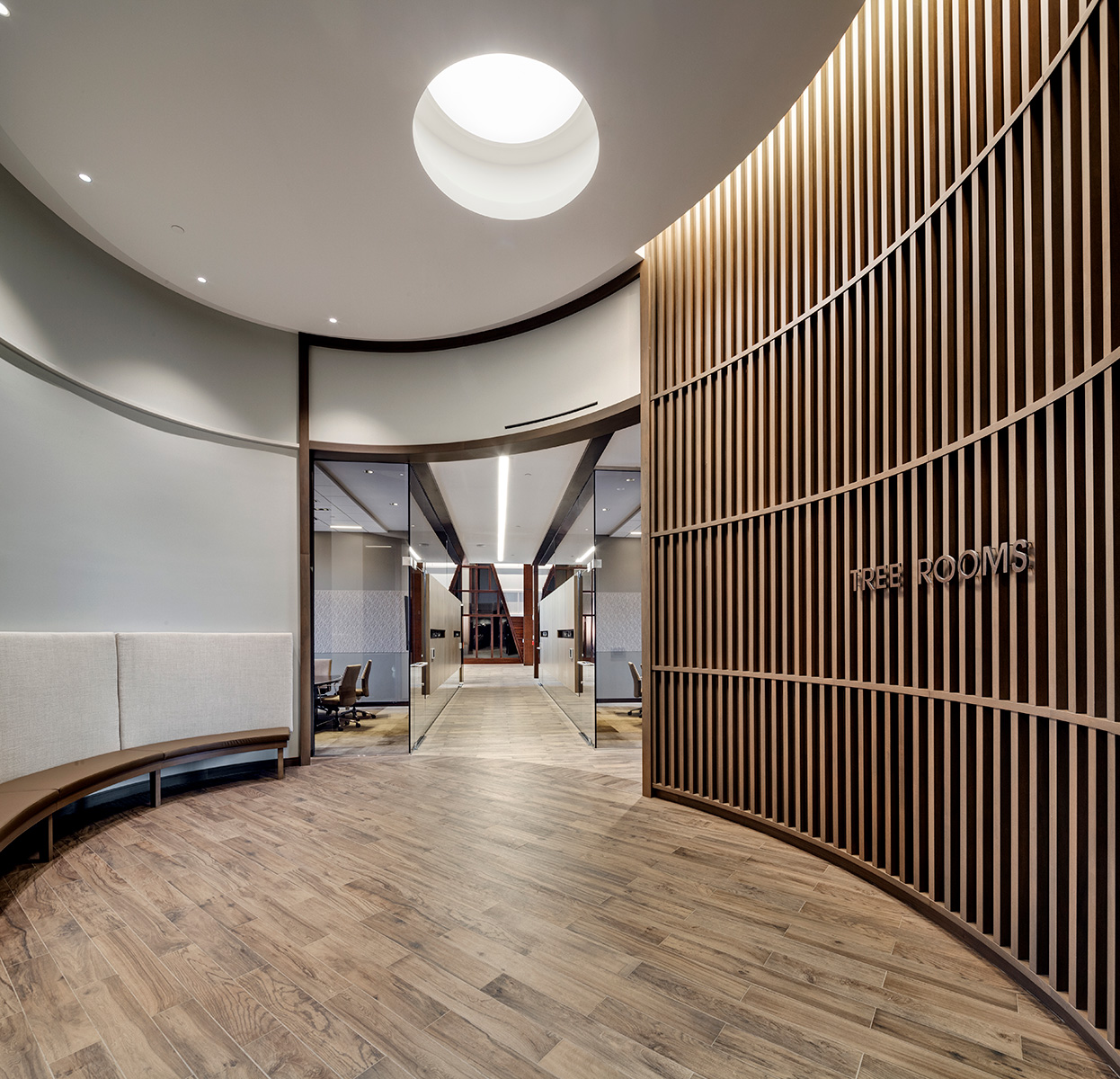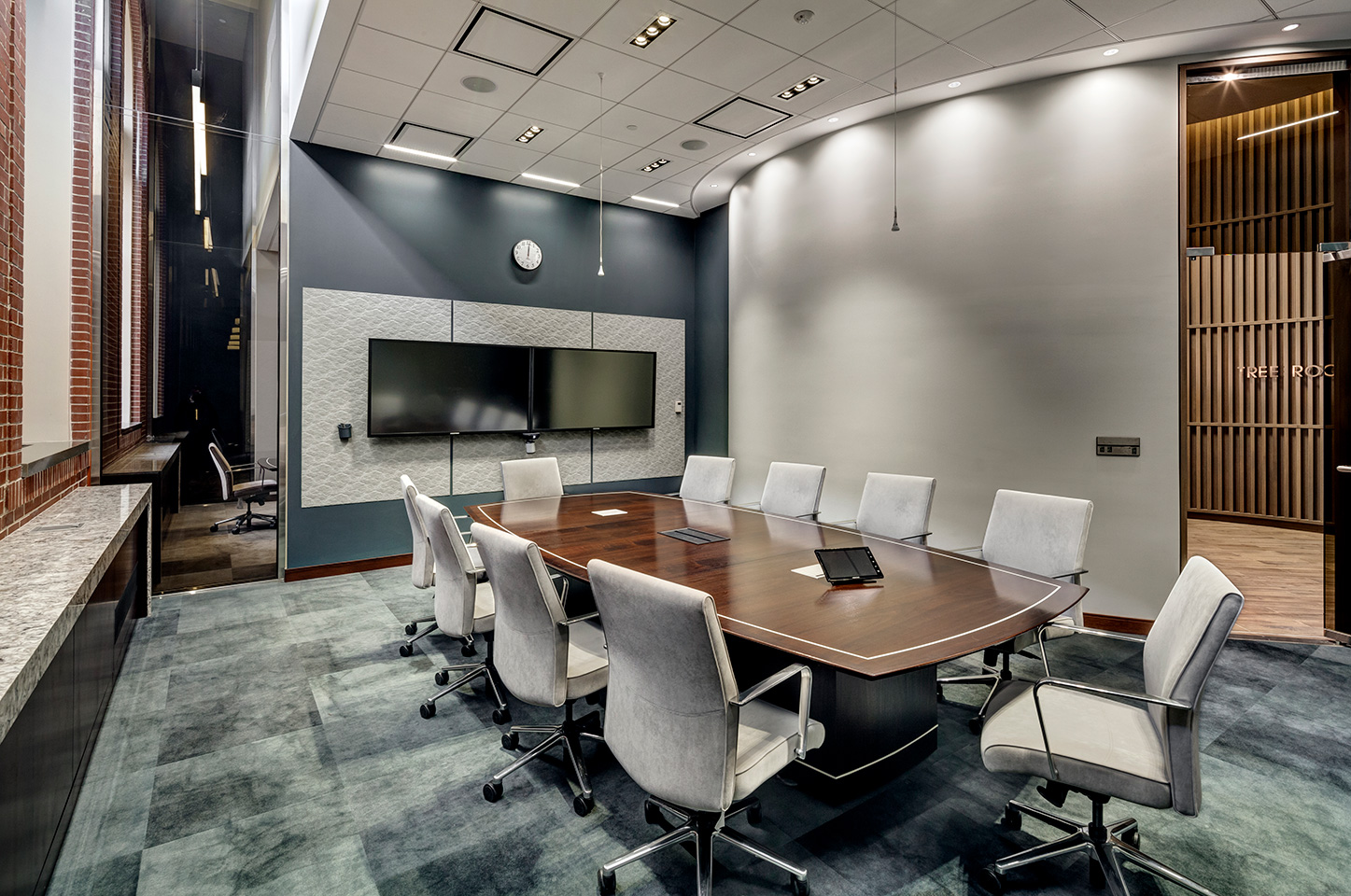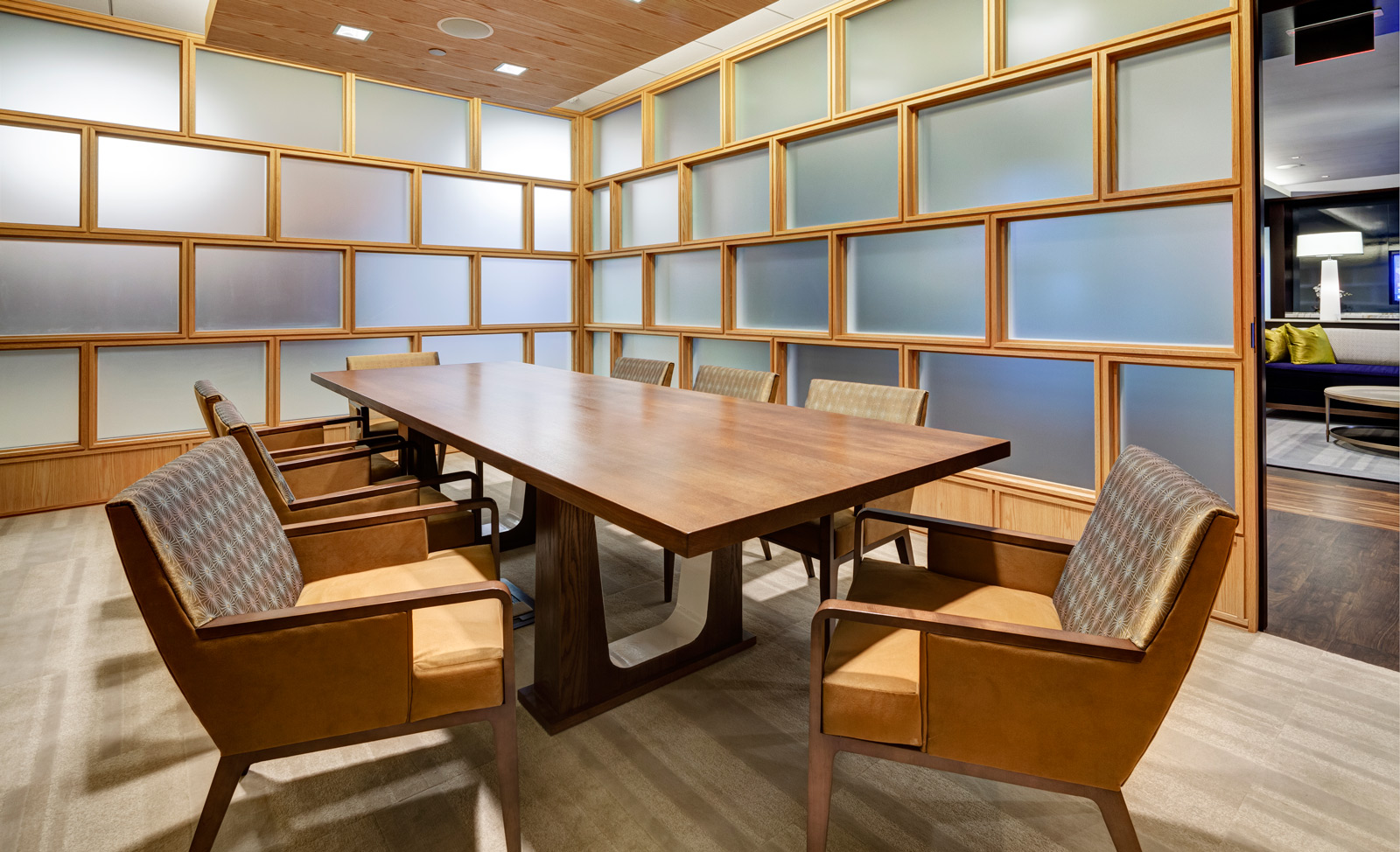 MassMutual commissioned Tecton for a high-end entry court, corporate lobby and conference suite for their Retirement Services Group. RS moved from the headquarters to a satellite campus, requiring a comprehensive overhaul of the uninspiring 1980′s corporate facility. The solution is high-class and elegant, fostering a marked improvement in global business sales.