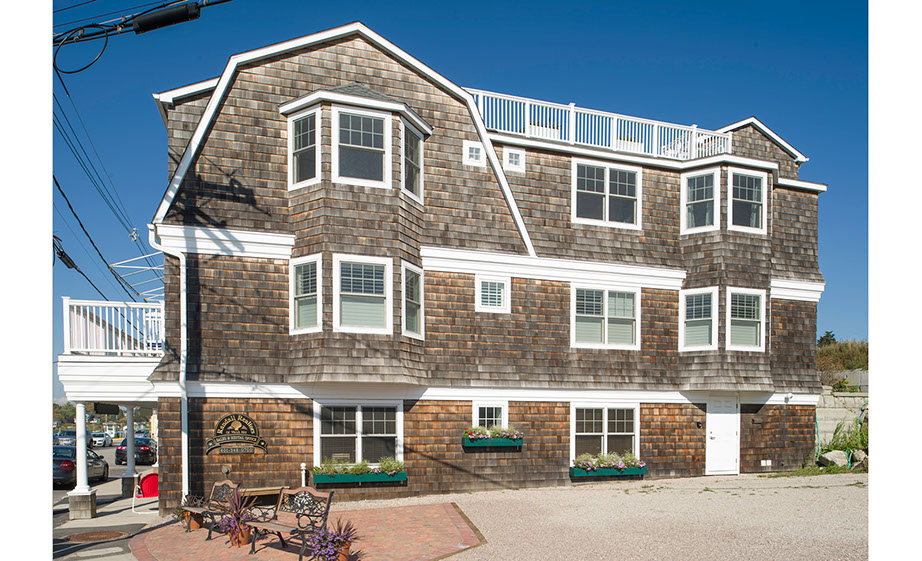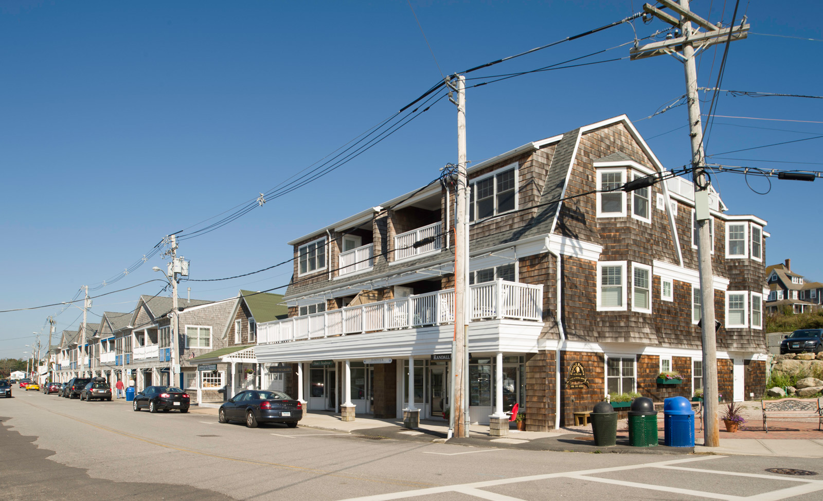 The Napatree Point Condominium includes ten 2,000 SF townhomes and one smaller residential unit with a retail component. It is located on a knoll overlooking the harbor in the historic district of Watch Hill, Rhode Island.