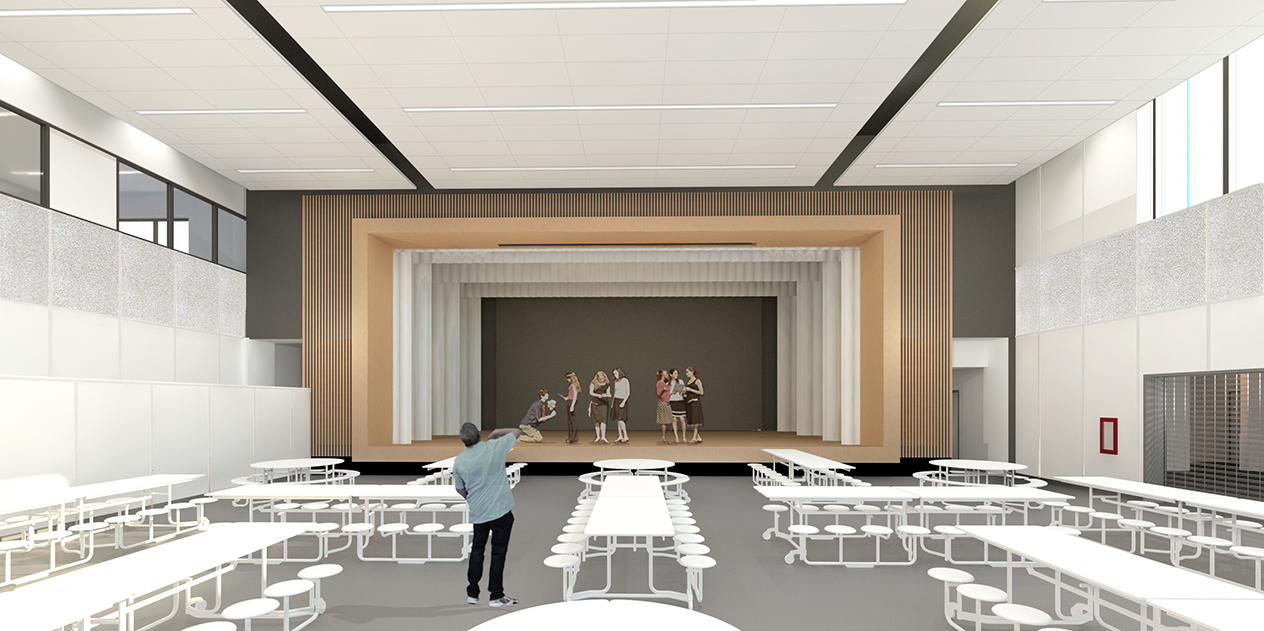 The project will also involve the construction of parking lots, site circulation, utility infrastructure, as well as athletic fields to replace those affected by construction. In addition to traditional middle school spaces, the new building will include large science laboratory classrooms, an engineering tech classroom, a full sized gymnasium and a cafetorium.