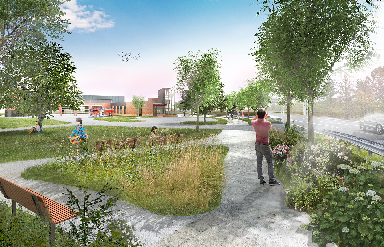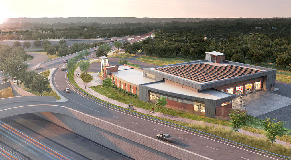 A community pocket park and shared bike path will be built following demolition of the existing building on the site, connecting both the station and neighborhood to amenities.
